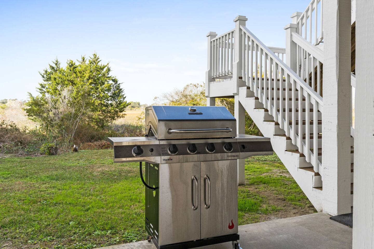 Longleaf on OIB: 2 king ensuite bedrooms ✔ 2 min walk to beach ✔ Family friendly ★ "Beautifully decorated, super comfortable, and had every amenity we needed." ☞ 3 porches w/ 180° views of the marsh ☞ 1 gig wifi ☞ 65” + 40” (2) Smart TVs w/ Netflix ☞ Fully equipped + stocked kitchen ☞ Ample parking (6 cars) ☞ Beach essentials + access ☞ Outdoor gas grill + picnic table ☞ Indoor electric fireplace 3 mins → downtown OIB (dining, park, shopping) 15 mins → Sandpiper Bay Golf & Country Club